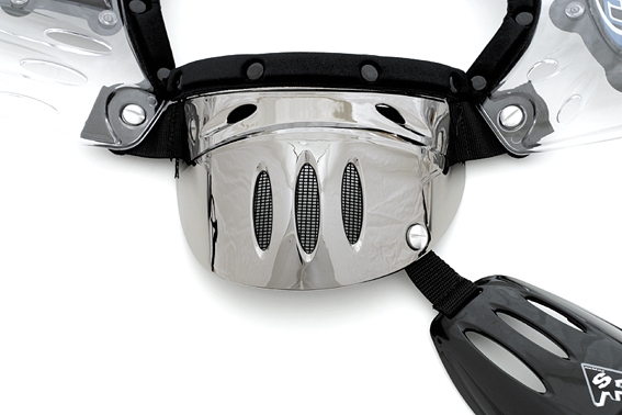 熱気の貯まりやすいショルダー上部に5ケの放出口を施し、冷却と軽量化を図りました。また羽のように軽いショルダーはライダーの疲労を軽減させます。